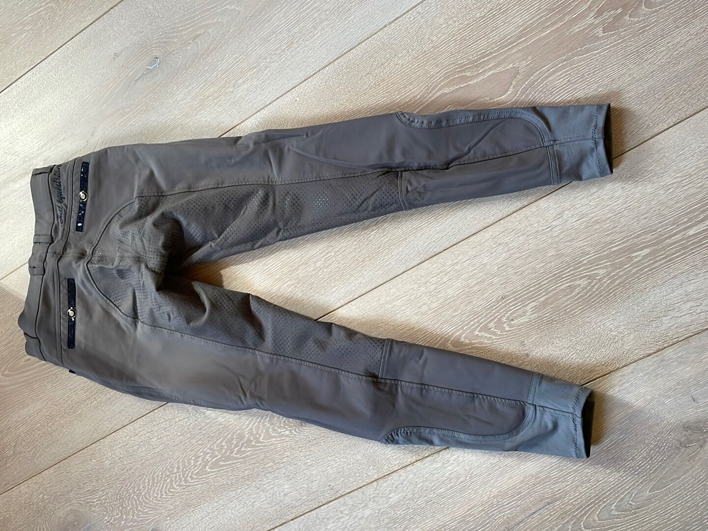 Winter breeches in gray with rhinestone applications - Full grip winter breeches in gray with dark blue rhinestone applications of the brand 4Riders in size 34! Worn only once therefore like new. Attention: Pants falls one size larger!